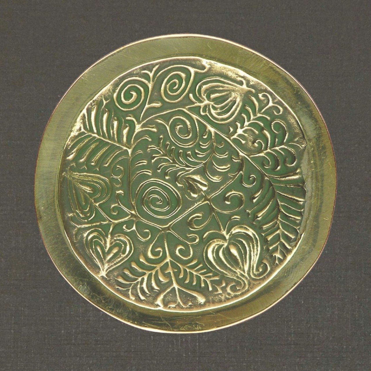 Coupelle ronde en bronze réf. 71015, broderie, Toulhoat. Diamètre 8 cm. Délai de livraison de trois semaines à un mois, parfois moins : le temps de la fabrication.